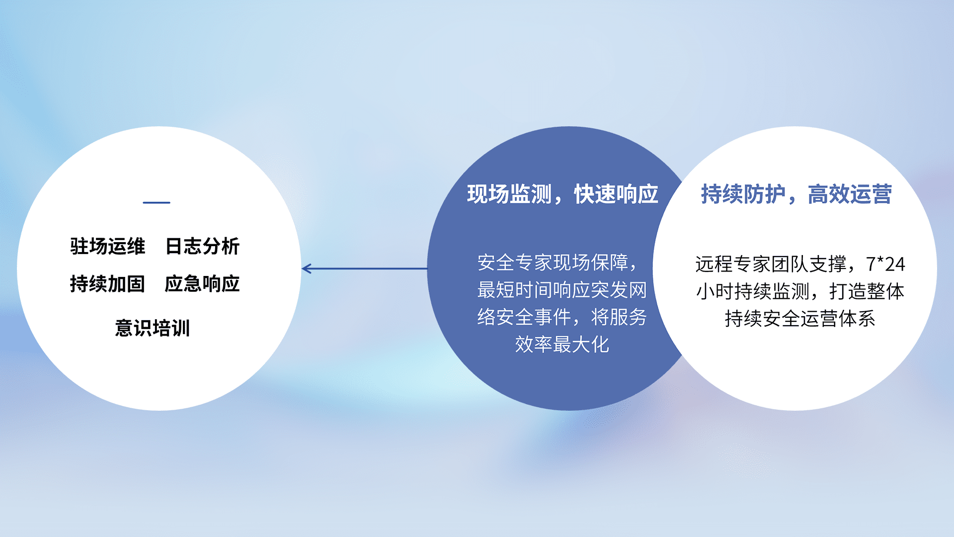 7X24小时持续监测安全事件,保持安全策略有效性,降低资产脆弱性风险,,,,精准拦截黑客攻击,,,减少被黑客利用的机会,,,,第一时间遏制,,,,降低损失。。。
